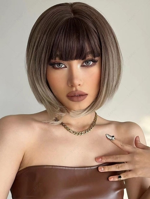 Zaful Brown Gradient Platinum Full Bangs Bob Haircut Short Straight