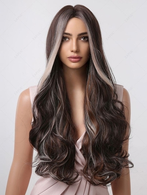 Zaful Brown Highlight White Long Wavy Synthetic Wig