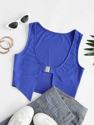 ZAFUL Buckle Front Ribbed Cropped Tank Top L Blue
