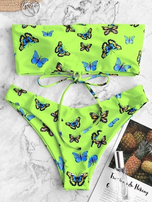 Material: Polyester, Spandex Bra Style: Padded Support Type: Wire Free Collar-line: Strapless Pattern Type: Butterfly Decoration: Lace up Waist: Low Waisted Weight: 0.2300kg Package: 1 x Top 1 x
