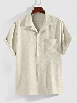 Zaful Shirts Type: Casual Shirts Style: Casual Occasions: Daily Fit Type: Regular Fit Shirt Length: Regular Sleeves Length: Short Collar: Turn-down Collar Material: Polyester Material Stretch: Slight Stretch Pattern: Solid Color Season: Summer Weight: 0.2200kg Package: 1 x Shirt
