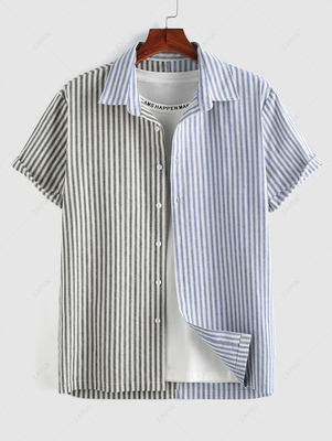 Zaful The shirt combines fashionable style with a color-blocking stripe print & will be your perfect outdoor partner. Featuring a turn-down collar & button-down silhouette, the piece can go perfectly with everything & will be a perfect masculine wardrobe piece to create a chic look. Shirts Ty