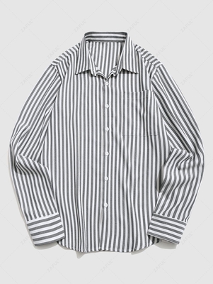 ZAFUL Button Up Stripe Printed Long Sleeve Pocket Shirt L Gray