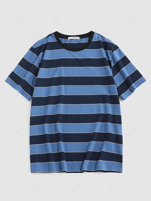 Zaful Style: Casual Material: Cotton Material Stretch: High Stretch Fit Type: Regular Fit Shirt Length: Regular Sleeves Length: Short Collar: Round Collar Pattern Type: Striped Season: Summer Weight: 0.2000kg Package: 1 x T-shirt