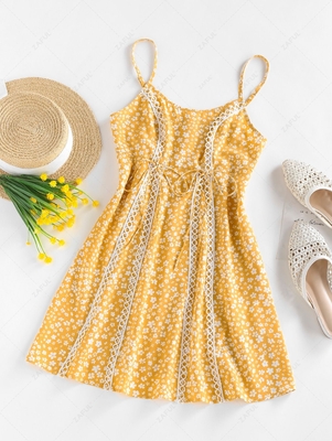 Zaful A sweet dress featuring an allover lovely floral pattern has contrast crochet inserts, adjustable shoulder straps, and bowknot decoration that just under the bustline for a figure-flattering look. Style: Cute Occasion: Day Material: Polyester Silhouette: A-Line Dress Type: Sundress Dresses Le