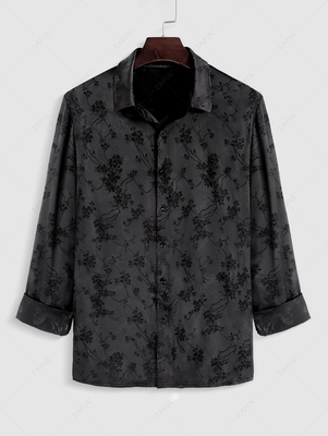 ZAFUL Flower Jacquard Button Up Shirt M Black
