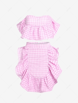 Includes:: a bandeau top with visible back zip, & a bodycon skirt, both have gingham patterns & dramatic flounce accents. Occasion: Beach & Summer, Vacation Style: Cute Fit Type: Skinny Silhouette: Bodycon Collar-line: Strapless Sleeve
