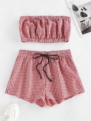 Zaful Lively & timeless gingham brings endless charms to this shoulder-flaunting two-piece featuring a ruched tube top & a pair of drawstring-waist shorts to complete the girly style. Occasion: Casual , Daily Style: Fashion Fit Type: Regular Collar-line: Bandeau Collar Sleeves Length: Sleeveless
