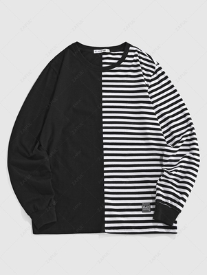 Zaful This stylish t-shirt has a round collarline, long sleeves, & a regular-fit bodice. The striped half print adds a trendy finishing touch! Pair it with loose jeans or cargo pants for a complete look. Style: Casual Fit Type: Regular Fit Shirt Length: Regular Sleeves Length: Long Sleeves Collar