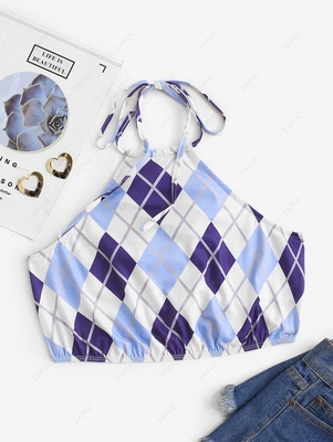 Zaful Classical in argyle, this top featured in a halter, cropped silhouette with a back tie design. Style this top with high-waisted jeans for a look that will turn heads. Style: Fashion Shirt Length: Short Collar: Halter Collar