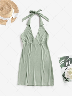Zaful Simple yet feminine, this mini halter dress in a solid color emphasizes a plunging collarline, bodycon silhouette, an open back and a cozy ribbed knit for a flirty, feminine look. Pair it with your fave heels to create a relaxing modern style. Style: Sexy Occasion: Day Silhouette: Bodycon Col