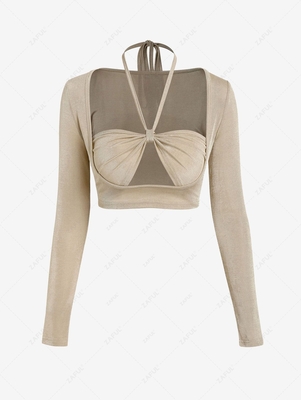 ZAFUL Halter Cut Out Bustier-style Cropped Tee L Light Coffee