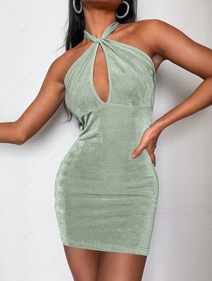 Zaful This stretchy jersey dress featuring a chic halter collar with a large keyhole, & a figure-hugging silhouette to show off your curves. Finish the look with lace-up heels to hanging out with the gals. Style: Sexy Occasion: Day, Going Out
