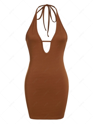Zaful Your weekend outfit is finally sorted with this dress. Featuring a plunge front with a halter collar, a fully open back with ties detail, & a figure-flattering bodycon fit, we are in love. Style with sandals & a statement bag to have all eyes on you. Style: Sexy Occasion: Club, Going Out, N