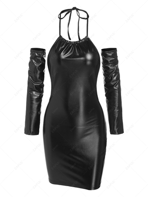 Zaful Go to hug your curves to maximize your moto-chic look in this faux-leather dress with an adjustable halter collar, a sleek open back to enjoy large amounts of sunshine, & a pair of detachable sleeves. Style: Fashion, Punk, Sexy Occasion: Club, Day, Night Out