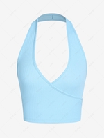 Zaful Whether you style it sexy or sweet, this cropped halter top, crafted from a stretchy ribbed fabric with a sultry open back, is a great match for high-waisted looks to keep you look stylishly simple. Style: Fashion, Sexy Shirt Length: Crop Top Collar: Halter Collar