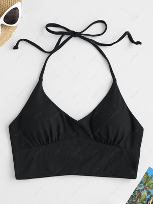 Zaful Cut from the soft stretch-rib fabric, the crop top features a halter silhouette with ruching detail at the front & tie it up at the back & adjust it how you want. Gender: For Women Swimwear Type: Bikini Top