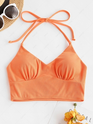 Zaful Cut from the soft stretch-rib fabric, the crop top features a halter silhouette with ruching detail at the front & tie it up at the back & adjust it how you want. Gender: For Women Swimwear Type: Bikini Top