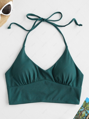 Zaful Cut from the soft stretch-rib fabric, the crop top features a halter silhouette with ruching detail at the front & tie it up at the back & adjust it how you want. Gender: For Women Swimwear Type: Bikini Top