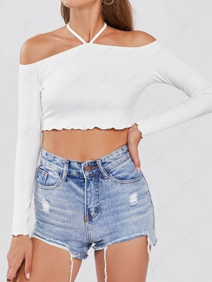 Zaful This top is sure to have all eyes on you. Featuring a soft ribbed material, a haltercollar, & a cold shoulder design. Style this with high-waisted bottoms & clear heels for a night with the dolls. Style: Sexy Occasions: Daily Shirt Length: Crop Top Collar: Halter Collar Sleeves Length: Lo