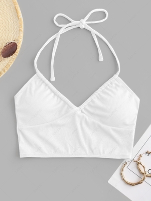 ZAFUL Halter Ribbed Cropped Bikini Top S White