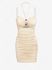 Zaful Draping with silky satin fabric, the dress features a halter silhouette & is defined by volume-enhancing ruching & draping at the front & back. Keep accessories low-key