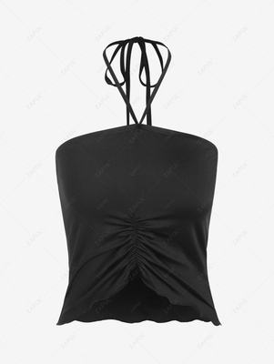 Zaful Style: Cute Shirt Length: Regular Collar: Halter Collar Material: Polyester, Polyurethane Pattern Type: Solid Decoration: Ruched Thickness: Standard Material Stretch: High Stretch Seasons: Spring, Summer Weight: 0.0880kg Package: 1 x Tank Top