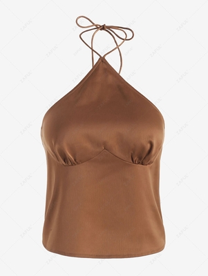 Zaful Thin tubular halter straps & a slightly ruched bust make an elegant start to a satiny camisole with a flirty open back that makes any look just a bit sexier. Style: Fashion Shirt Length: Short Collar: Halter Collar