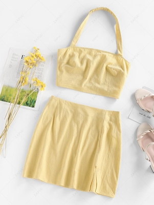 Zaful Perfect for hanging out with gals, this co-ord set including a cropped halter top & a slit bodycon skirt, both of which are in a solid color & provide a sexy charming look. Style: Sexy Occasion: Daily, Going Out Fit Type: Slim Silhouette: Bodycon Collar-line: Halter Sleeves Length: Sleevel