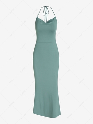 ZAFUL Halter Strappy Open Back Mermaid Dress L Green