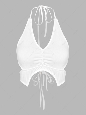 ZAFUL Halter Tie Cutout Backless Crop Top S White