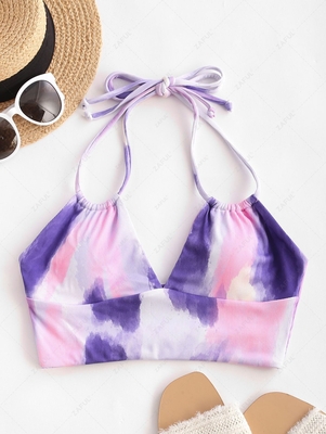 Zaful Dipped in an ombre tie-dye pattern, the bikini top is constructed from a ribbed fabric & features a dual straps halter silhouette. Optional padding & quilting under the bust for extra lift & support. Gender: For Women Swimwear Type: Bikini Top