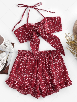 Material: Polyester Waist Type: High Closure Type: Elastic Waist Front Style: Flat Pattern Type: Floral Season: Summer Weight: 0.2300kg Package: 1 x Top 1 x Shorts