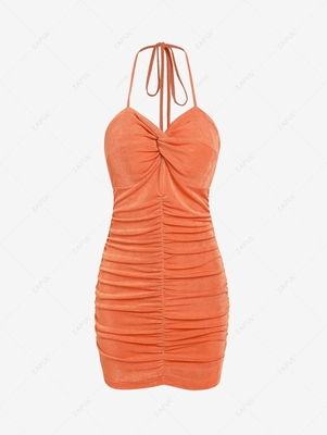 Zaful Twist it beautifully to flatter your curves in this figure-flaunting mini dress cut from soft jersey fabric with rippled ruches for textual touches, a sultry back, & slender halter straps tied for a just-right fit. Style: Fashion, Sexy Occasion: Cocktail & Party, Going Out Silhouette: Bodycon