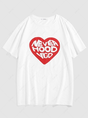 Zaful Style: Casual Material: Cotton Material Stretch: Slight Stretch Fit Type: Regular Fit Shirt Length: Regular Sleeves Length: Short Collar: Round Collar Pattern Type: Heart, Slogan Season: Spring, Summer Weight: 0.2310kg Package: 1 x T-shirt