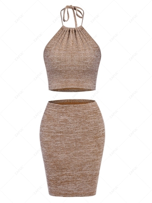 ZAFUL Heather Knitted Bodycon Skirt Set S Coffee