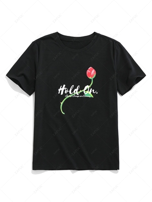 Zaful A basic tee is just the ticket for days when you want to look stylish and feel comfortable. This easy t-shirt is emblazoned with "Hold on" flower pattern and"better things are coming" letter print, and features a crew collar, short sleeves, and a relaxed shape. It can be paired with your most