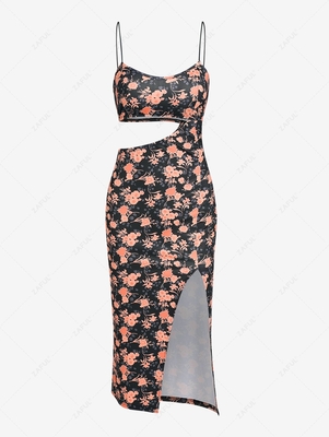 Material: Polyester, Polyurethane Material Stretch: High Stretch Pattern Type: Floral Decoration: Backless, Cut Out, Slit Season: Summ