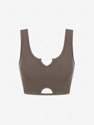 ZAFUL Hollow Out Ribbed V Notch Tank Top M Coffee