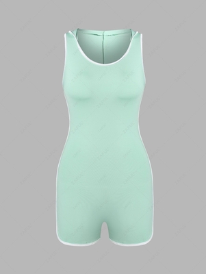 ZAFUL Hooded Contrast Binding Unitard Romper M Light Green