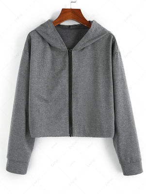ZAFUL Hooded Drop Shoulder Zip Up Heather Jacket Xl Gray