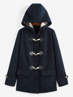 ZAFUL Hooded Horn Button Zip Up Pocket Coat L Deep Blue