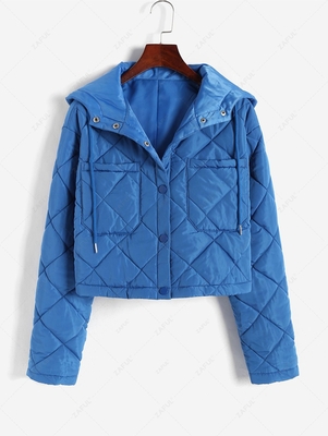 ZAFUL Hooded Quilted Pocket Coat S Blue