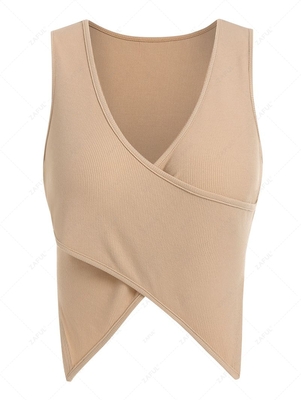 Zaful A flirty tank top in a ribbed fabric features a trendy crossover front & an irregular hemline for a basic yet chic style. Style: Sexy Shirt Length: Regular Collar: Plunging Collar