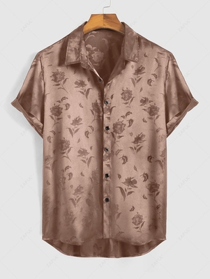 Zaful Shirts Type: Casual Shirts Style: Casual Occasions: Daily Fit Type: Loose Shirt Length: Regular Sleeves Length: Short Collar: Turn-down Collar Material: Polyester Material Type: Satin Material Stretch: No Stretch Pattern: Floral, Rose Print Decoration: Button, Jacquard Season: Summer Weight: 0.