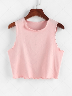 Zaful This slim tank top featuring a jersey fabric has lovely lettuce trims and a cropped length. Complete the look with a high-waisted bottom. Style: Basic Shirt Length: Crop Top Collar: Round Collar Material: Cotton, Polyurethane Pattern Type: Solid Thickness: Standard Material Stretch: Slight Str