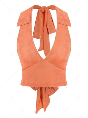 Zaful A breathable jersey fabric brings summery texture & comfort to a fresh-hued halter top that ties at the collar & is finished with a cropped length for high waisted looks, a low-cut front dips as low it does to the O-ring, & a sultry open back. Style: Fashion, Sexy Shirt Length: Crop Top ...
