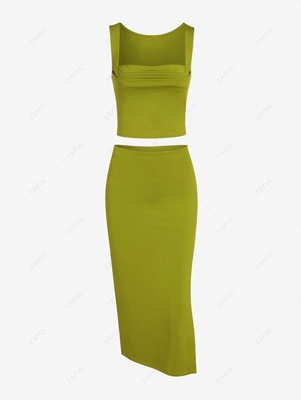 Zaful Crafted from a soft, stretchy jersey & featuring a ruched top & a side-slit skirt, this two-piece dress is a cool & flirty warm-weather option. Keep your look coordinated with a simple pair of heels. Style: Cute, Sexy Occasion: Daily, Date Night, Night Out Fit Type: Slim Silhouette: Bodyco