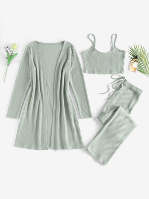 Zaful Refresh your after-dark collection with this pajama set. Featuring a crop cami top, straight pants with a bowknot decorated high waist, & a longline robe, all are crafted from a stretchy knitted fabric. Team this with fluffy slippers for a movie night with the gals. Style: Casual Occasions: