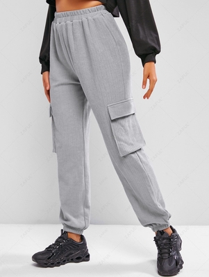 ZAFUL Knitted Pocket High Waisted Pants L Gray